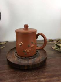 花鸟杯(紫砂艺人作品,朱泥,5 5 0 CC)