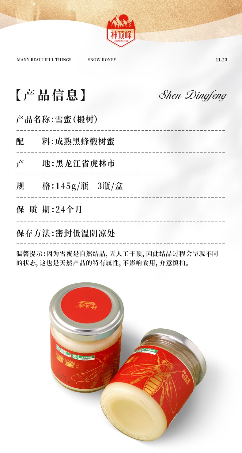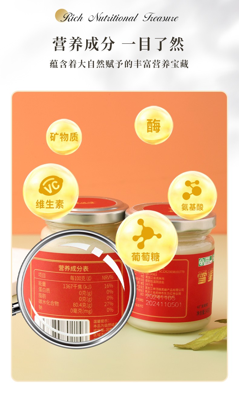 黑蜂雪蜜礼盒145gx3/金奖蜂蜜/地理标识