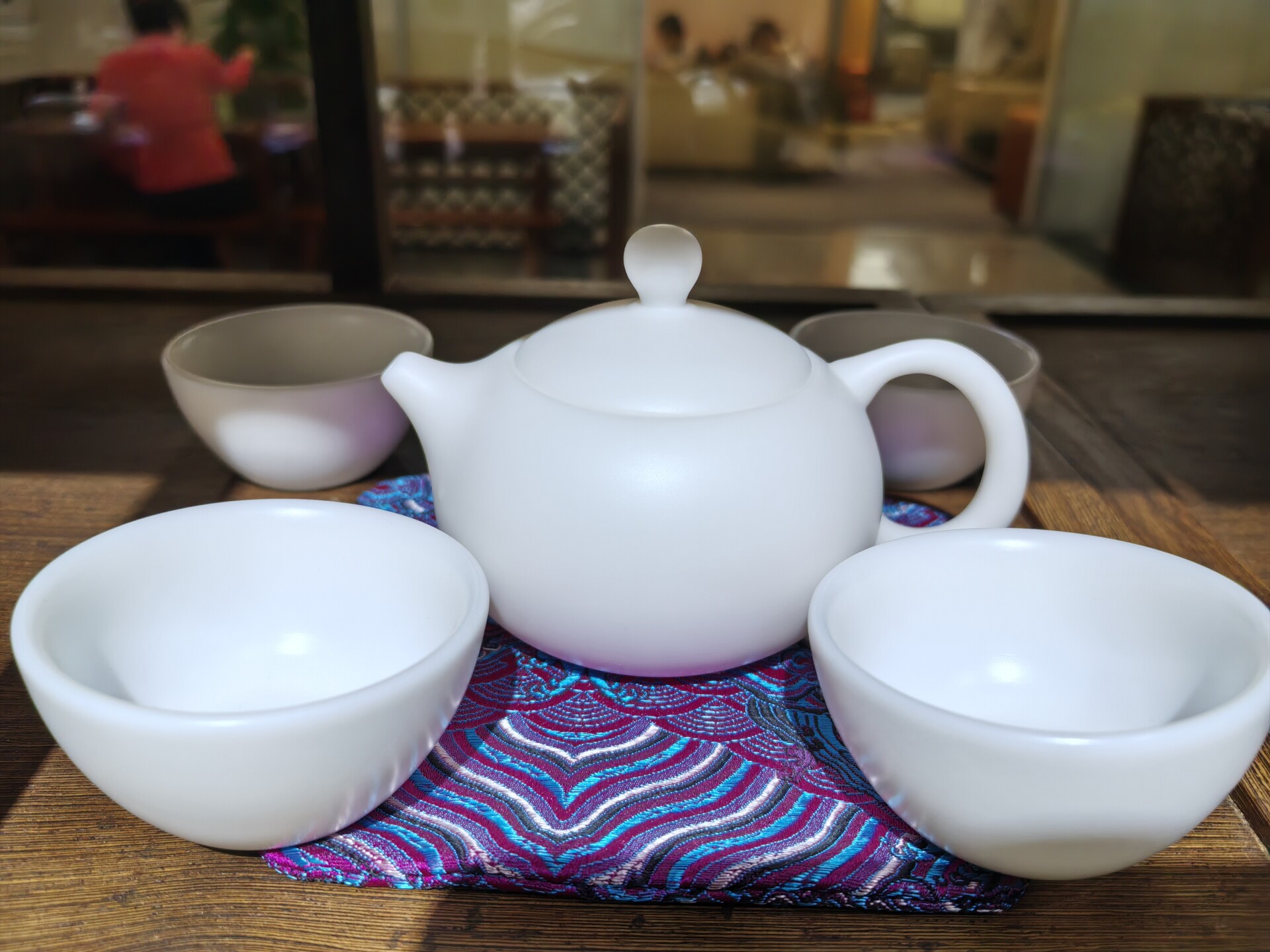 筝乡的瓷器,为瓷器中的上品,名为羊脂玉瓷。原材料是钾长石与高岭土经科学配比而成,再经1330度的高温,不上釉水,完全素烧,烧制成这温润如玉,细腻洁白的玉瓷,因它质感如凝脂,又叫“猪油白。”
