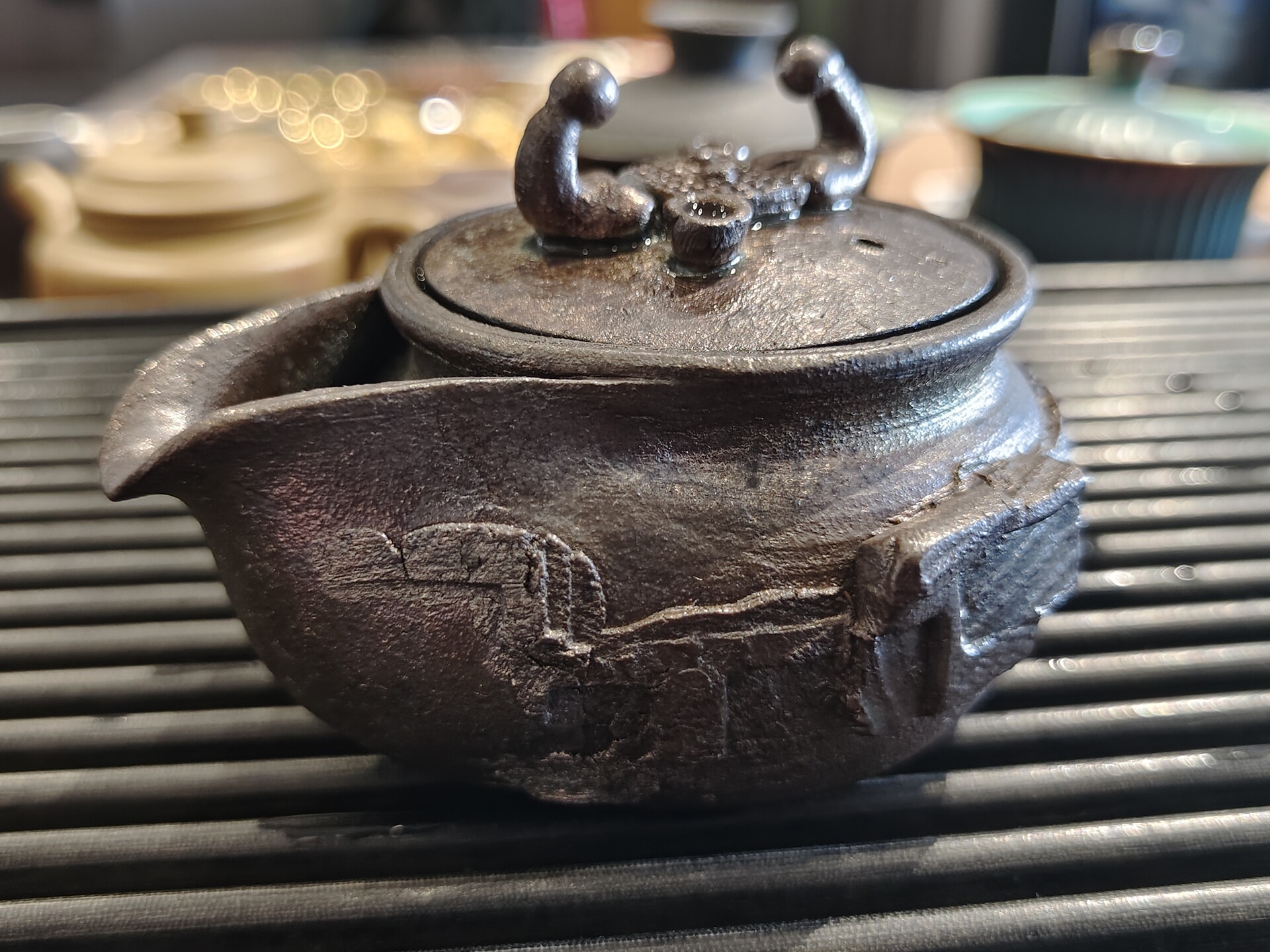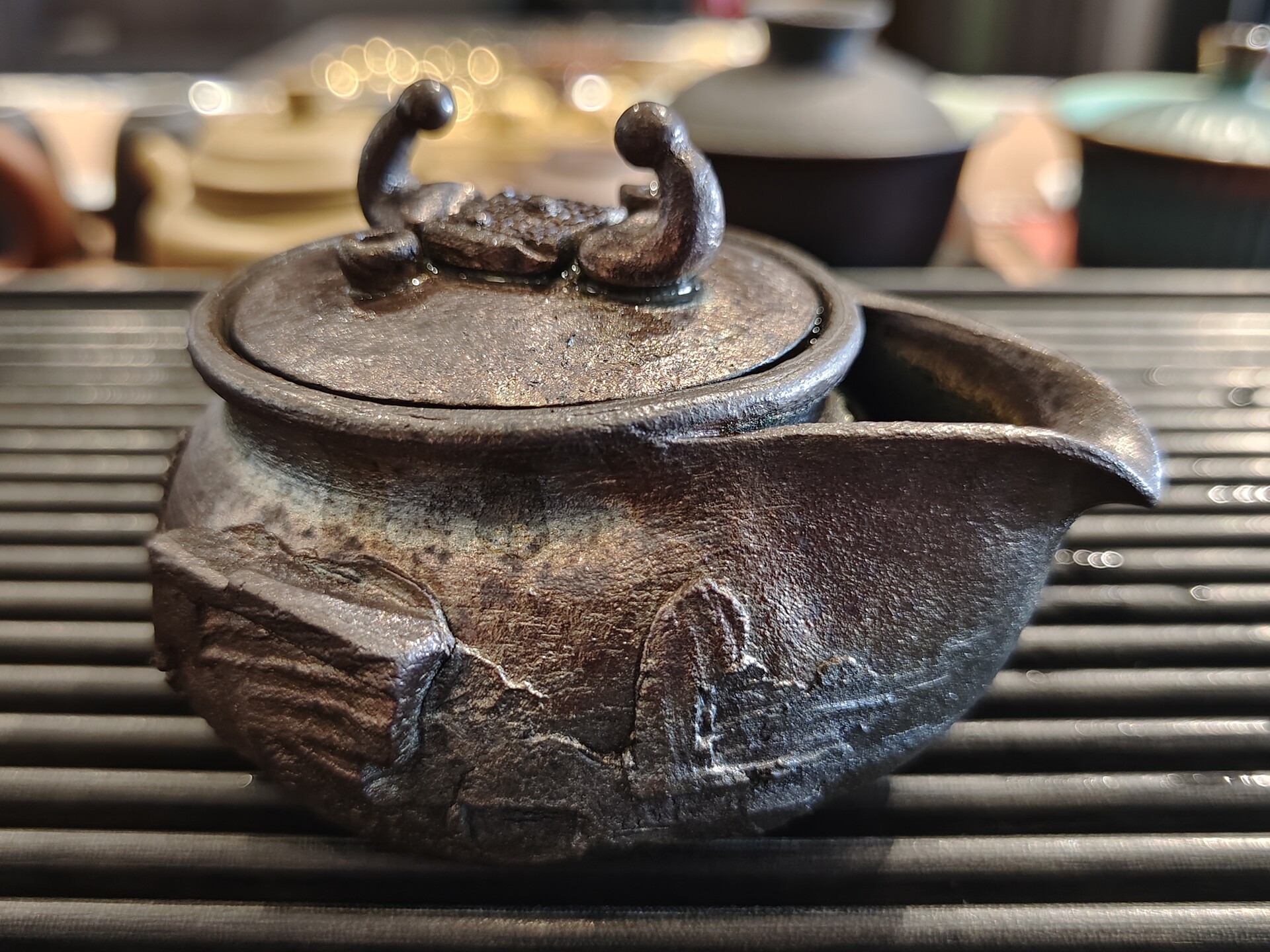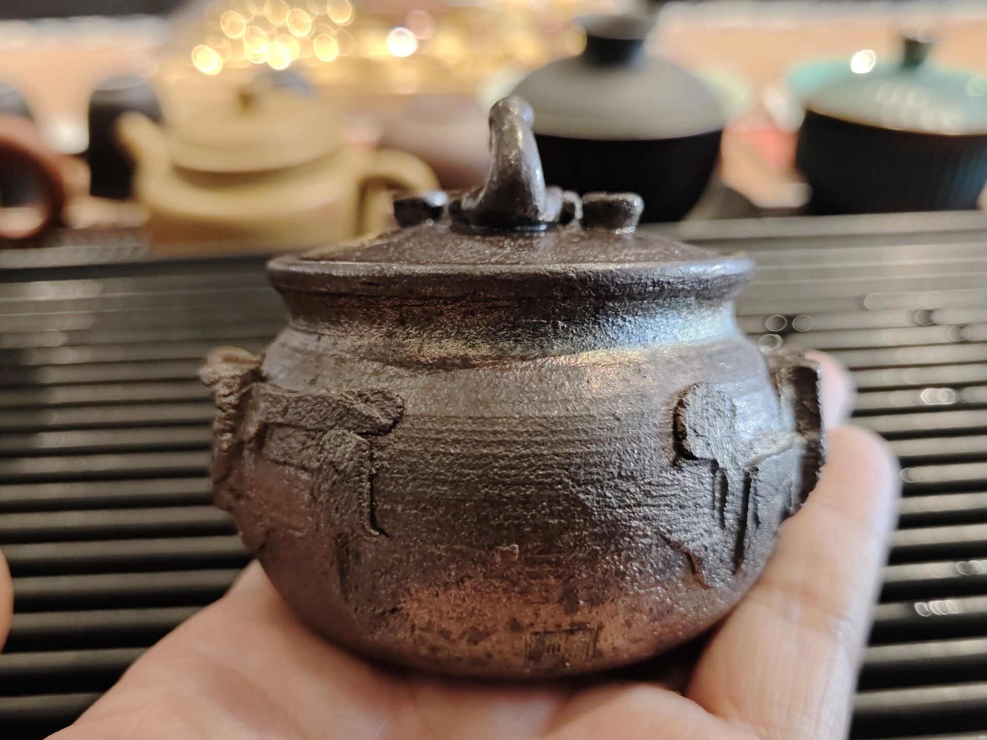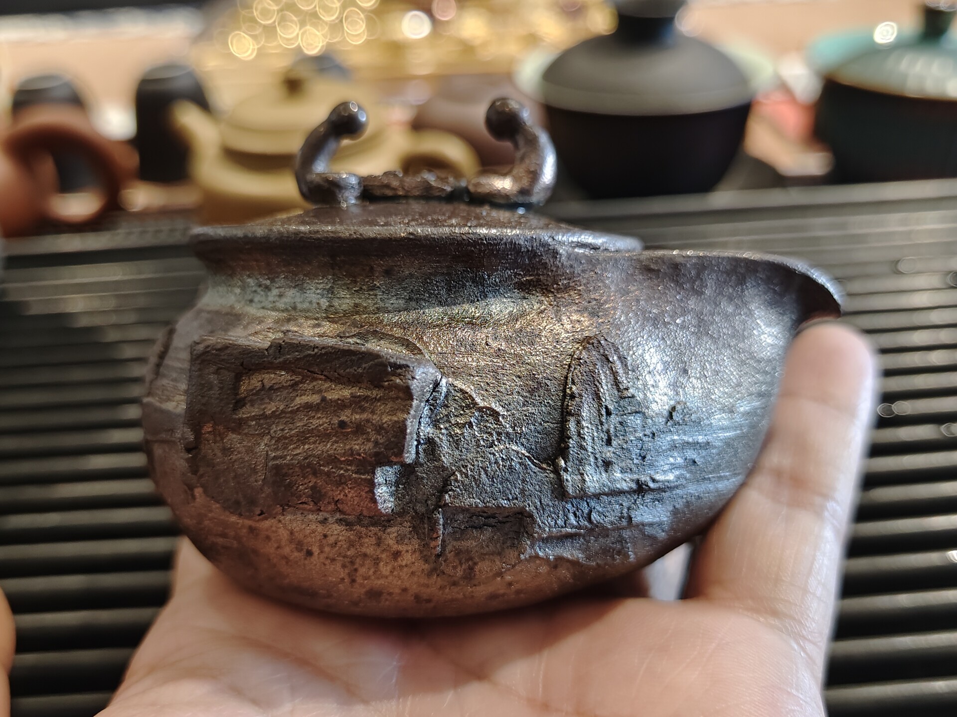 柴烧宝瓶《无相》手把壶,铁胎纯手工制作,容量100cc。无釉设计,经过柴烧工艺,每一处都有温度和情感的流动。适合收藏和日常使用,喝茶喝到最后杯子越来越大了壶越来越小了!一物一图