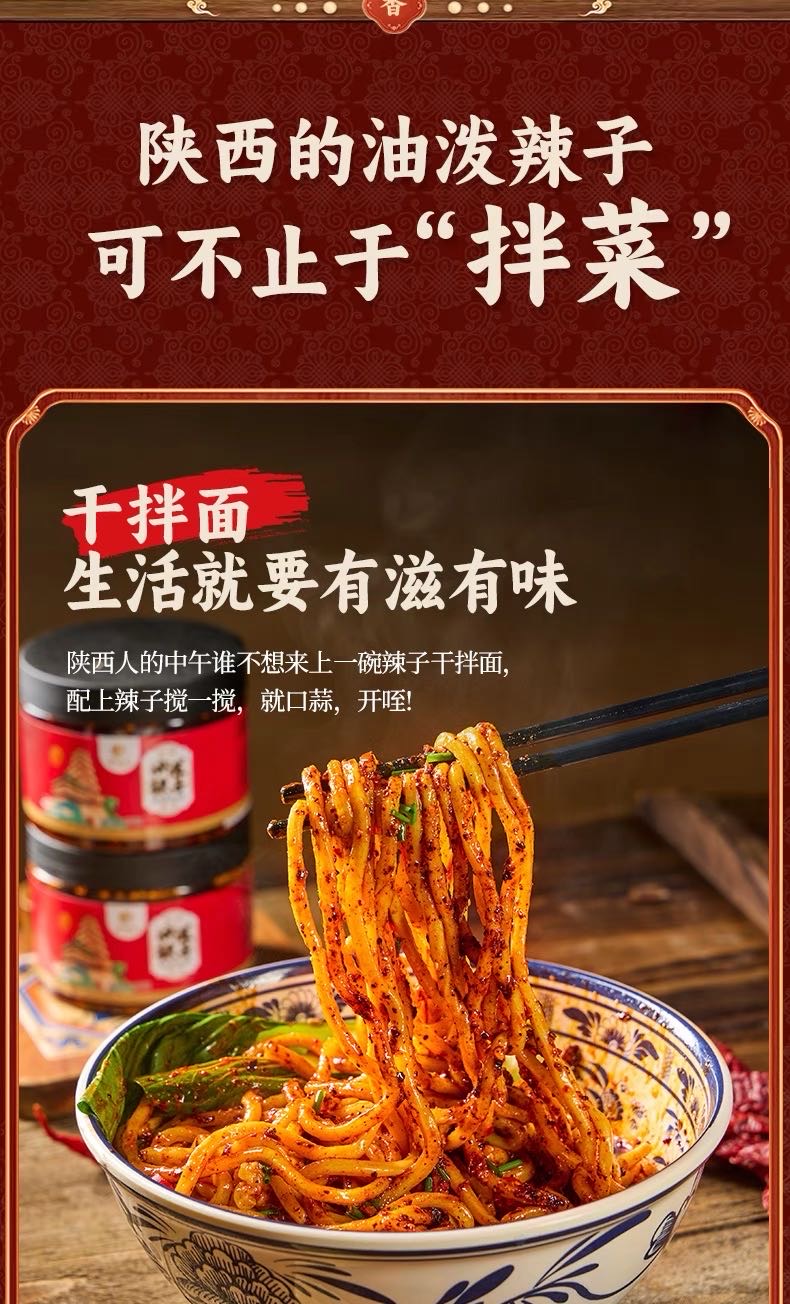 【包邮】陕西正宗油泼辣子200g*3瓶