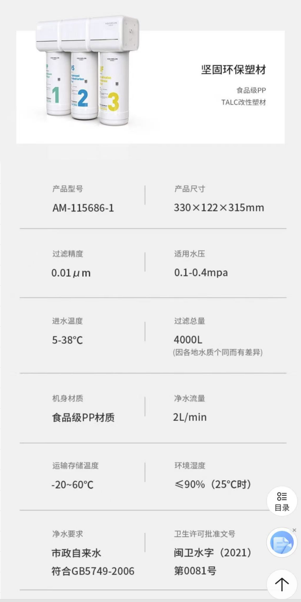 三级过滤,超微滤,保留矿物质,适合母婴净水需求。
