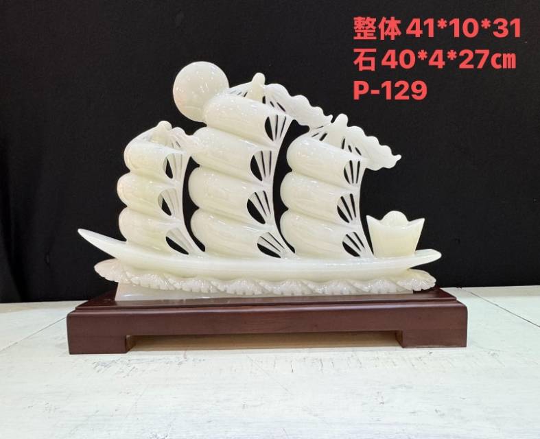 【包邮】白玉一帆风顺摆件精品(40cm)