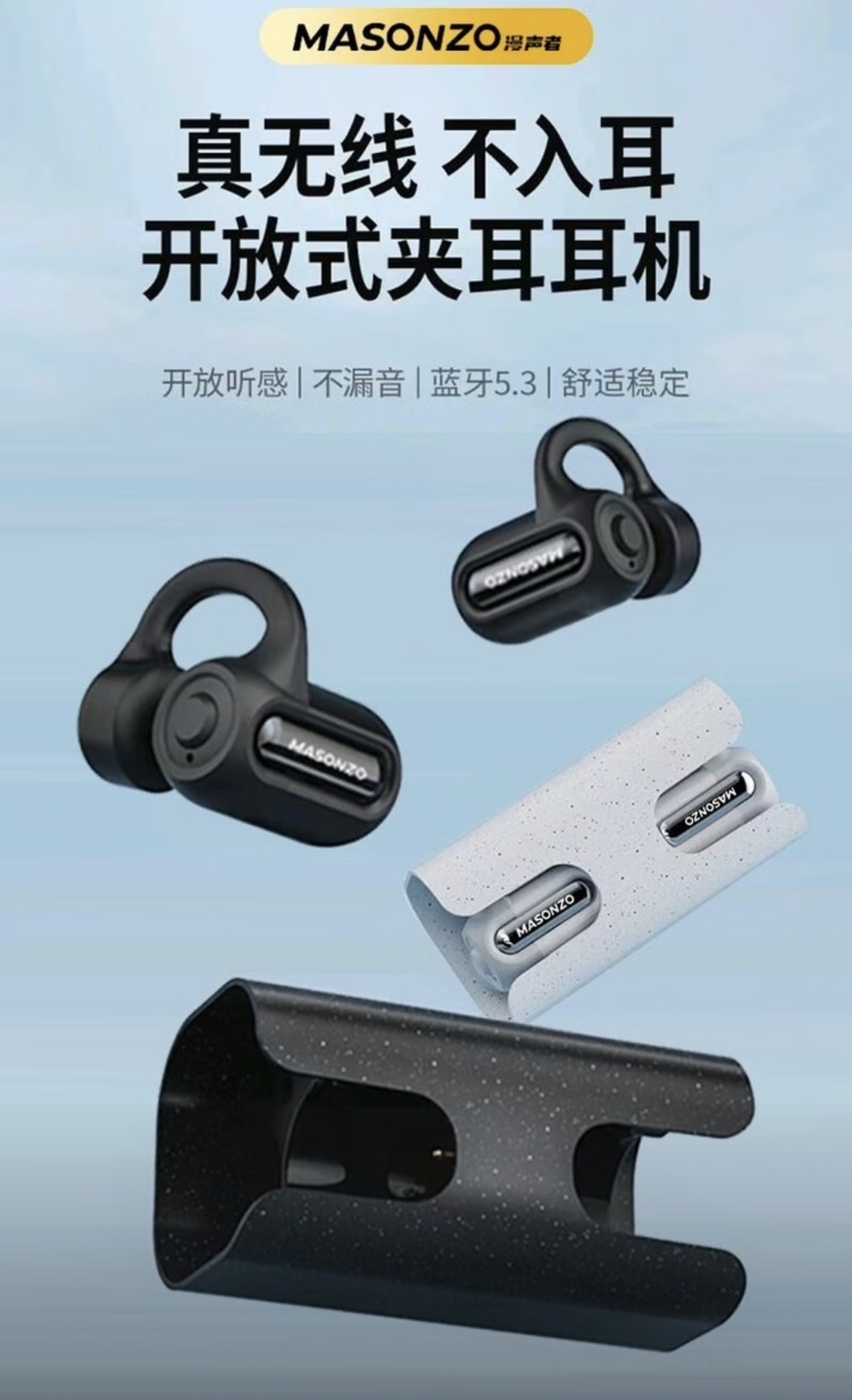 MASONZO 漫声者真无线蓝牙耳机蓝牙5.4半入耳式高清音质适配苹果华为小米 暖日白 旗舰版-超长续航|