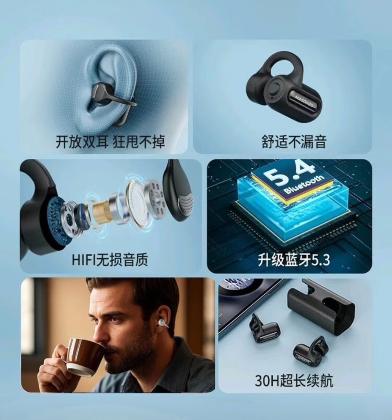 【包邮】MASONZO 漫声者【旗舰新款】真无线蓝牙耳机蓝牙5.4半入耳式高清音质适配苹果华为小米 暖日白 旗舰版-超长续航|