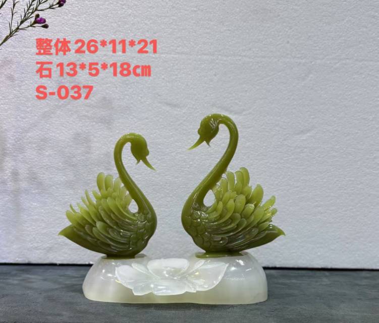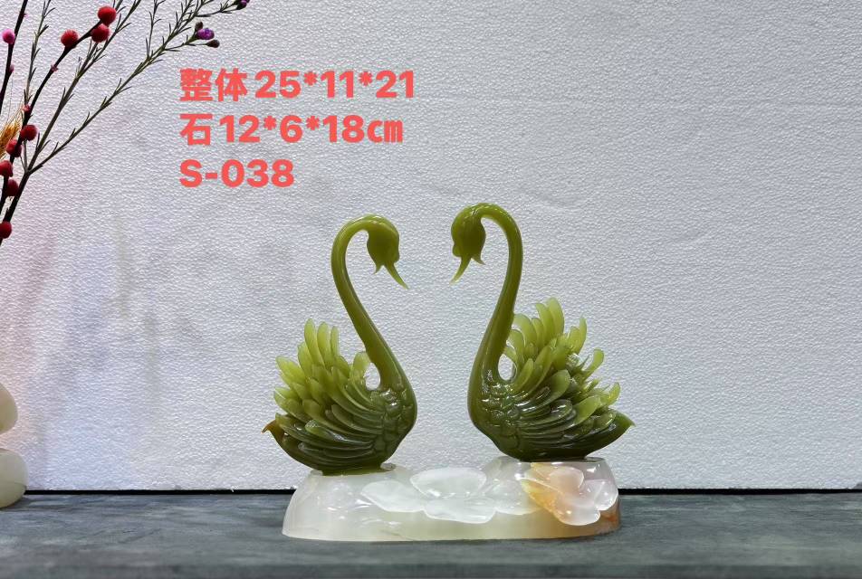 青玉玉石天鹅一对,百年和好结婚精品礼物