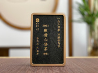 干茶外观条索嫩匀整,黑褐,显灰白霜,金花明显。经过多年竹箩存放后金花淡黄。一级品质,发酵度适度。由于年份久,无杂味,细嗅干茶有菌香。茶汤红明亮,汤中菌香明显,口感甘、醇、顺。