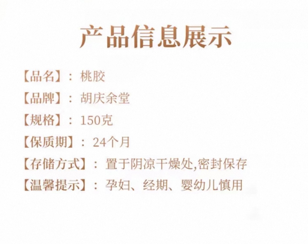 胡庆余堂 高品质桃胶150克
