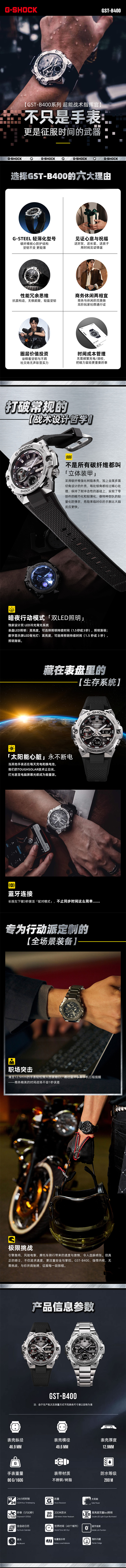 卡西欧(CASIO)G-SHOCK GST-B400系列钢铁坚韧之心防水运动男表