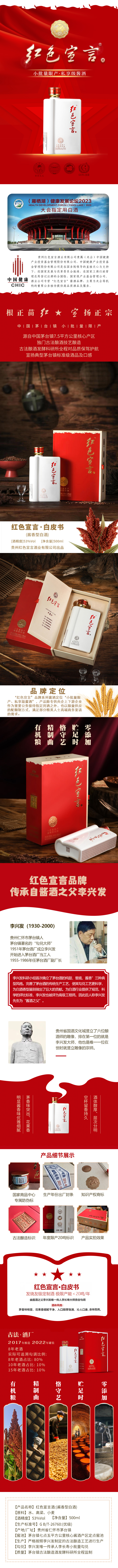 红色宣言品牌传承自茅台酒厂老厂长、酱酒之父李兴发大师,红色宣言-白皮书由李兴发大师唯一传人李长寿大师亲自勾调,入口醇厚饱满,沁人口鼻,余味劲爽。不支持七天无理由退货,邮寄破损包换。