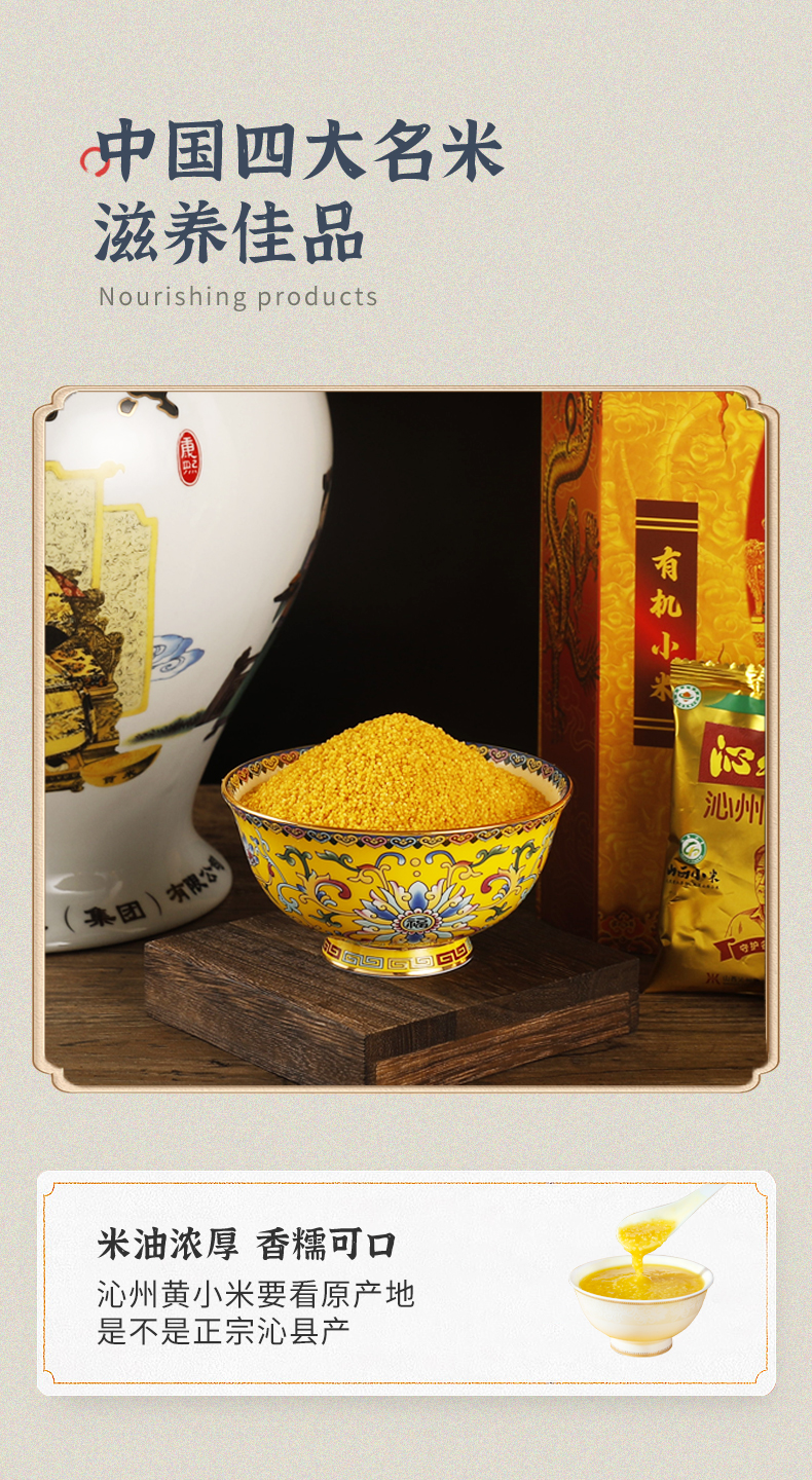 沁州黄有机小米,产自山西沁县核心产区,颗粒饱满金黄,米油浓郁,熬粥香糯黏稠。充氮保鲜技术锁住新鲜,有机认证更健康。年货佳选,馈赠亲友,品味传统与品质的融合。