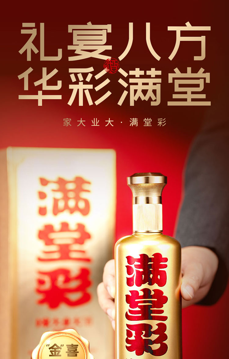 首页 >> 聚校友商城 >>酒水饮品 >> 家大业大 白酒酱香型满堂彩 福禄寿酱香型白酒53度500ml /瓶 *6瓶/箱 (满堂彩)(金瓶)
