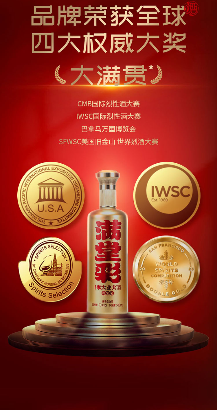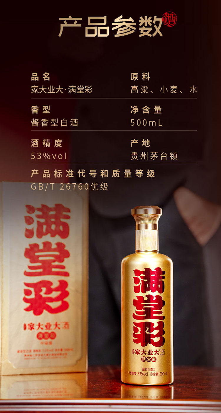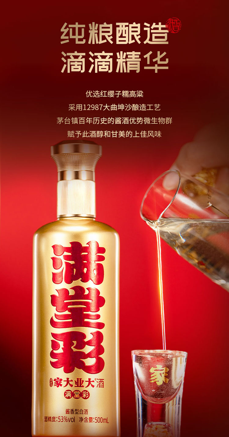 家大业大 白酒酱香型 满堂彩 福禄寿酱香型白酒53度500ml /瓶 *6瓶/箱 (满堂彩)(金瓶)