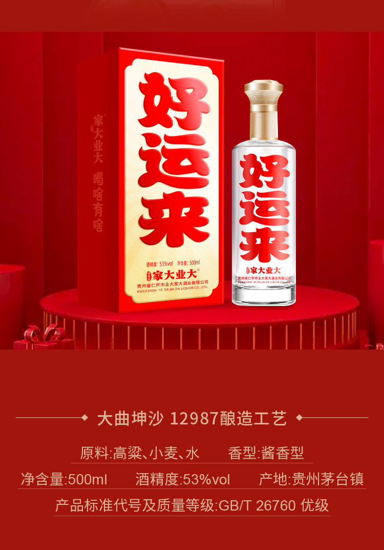 家大业大白酒酱香型 好运来 福禄寿酱香型白酒 53度500ml/瓶*6瓶/箱 (好运来)