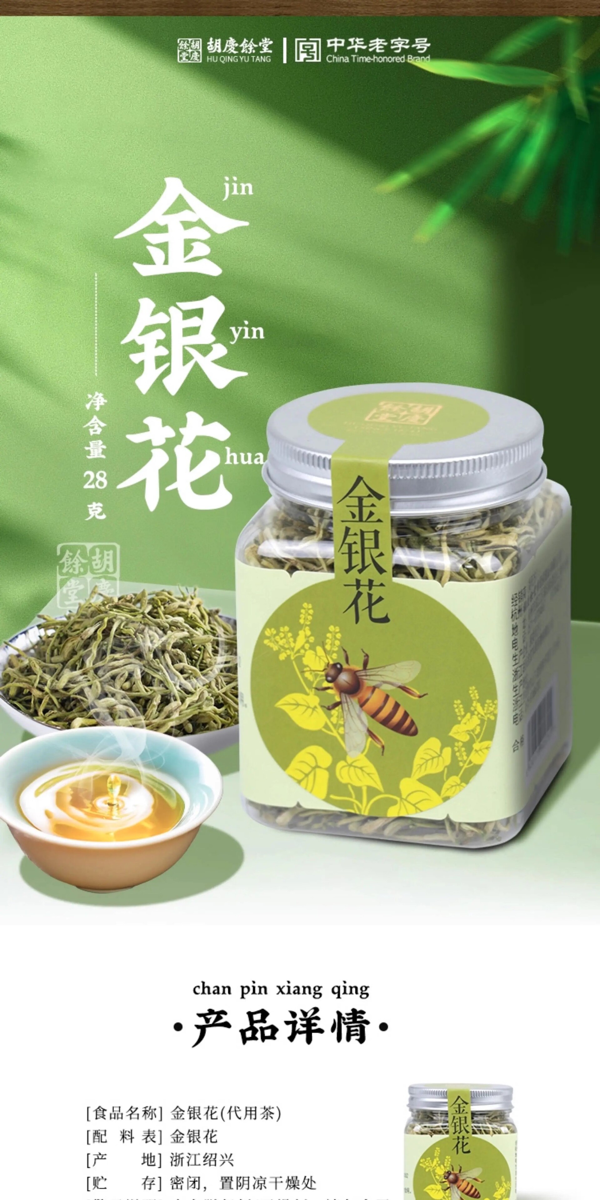 胡庆余堂 金银花28克方罐