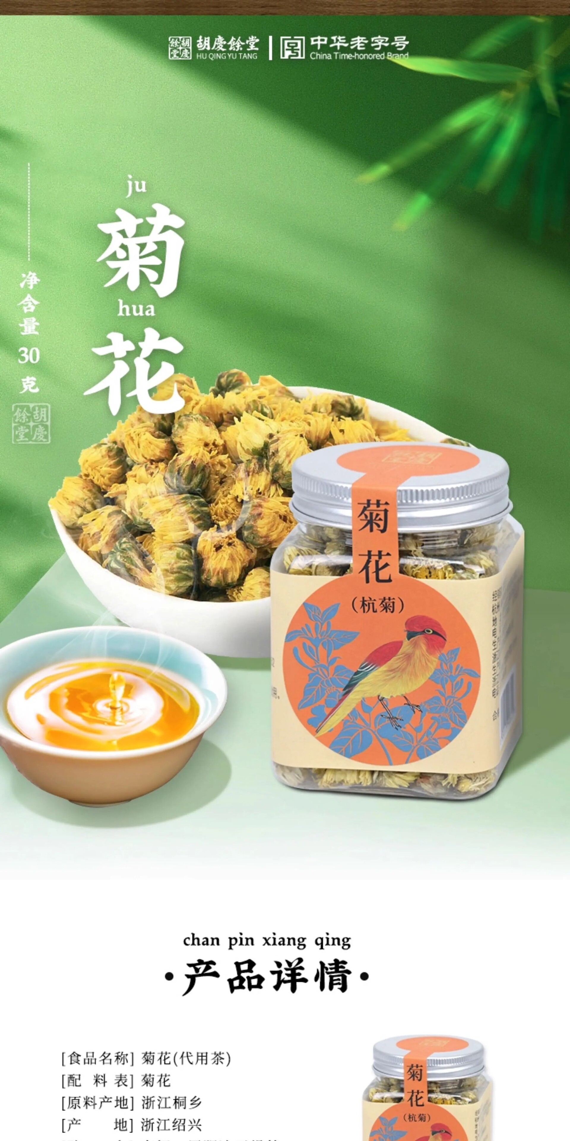 首页 >> 聚校友商城 >>天然滋补 >> 胡庆余堂 菊花杭菊30克
