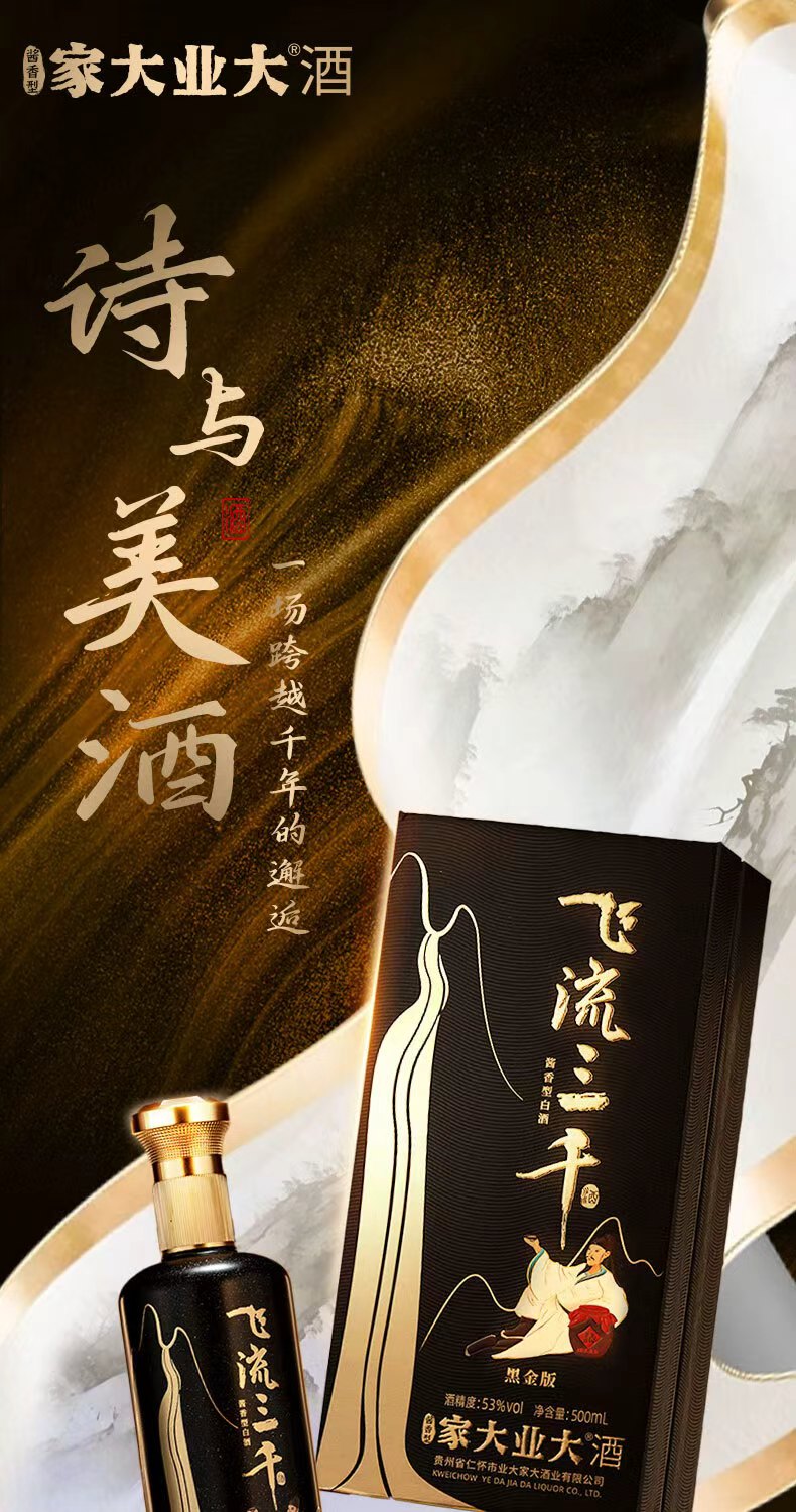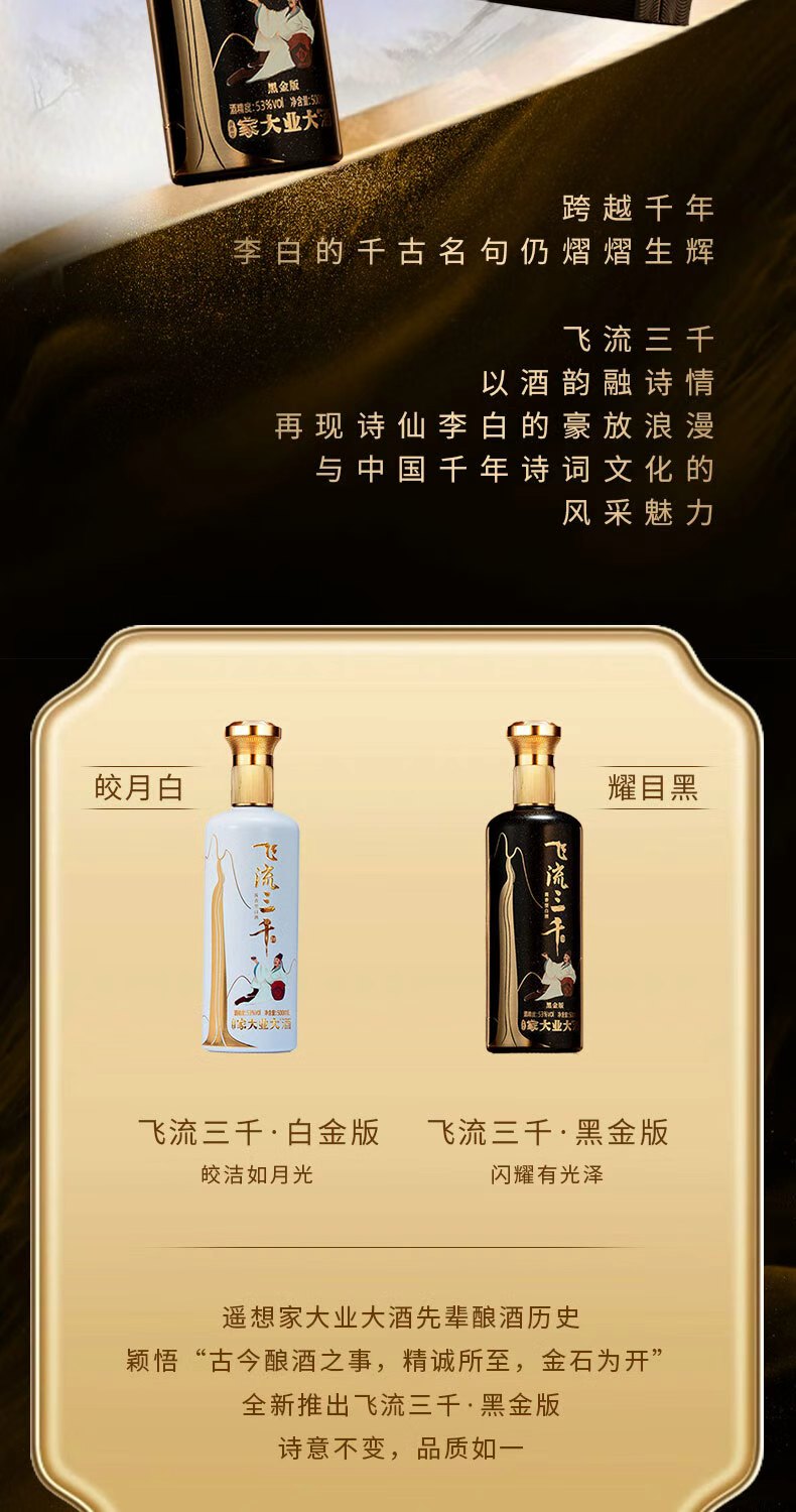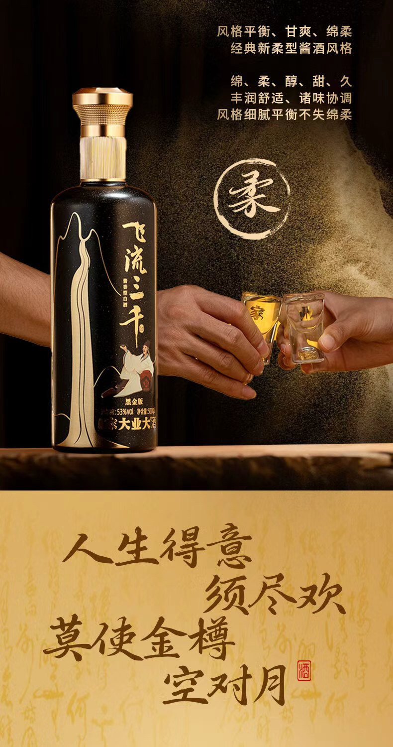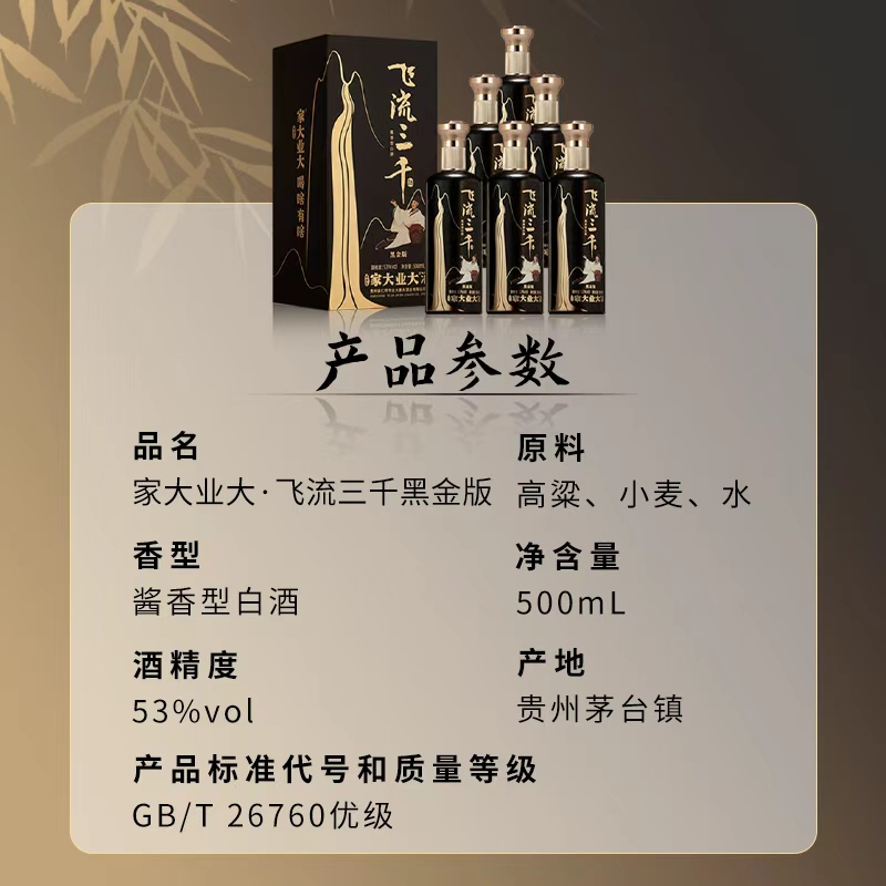 规格描述:飞流三千黑金版500ml*6瓶