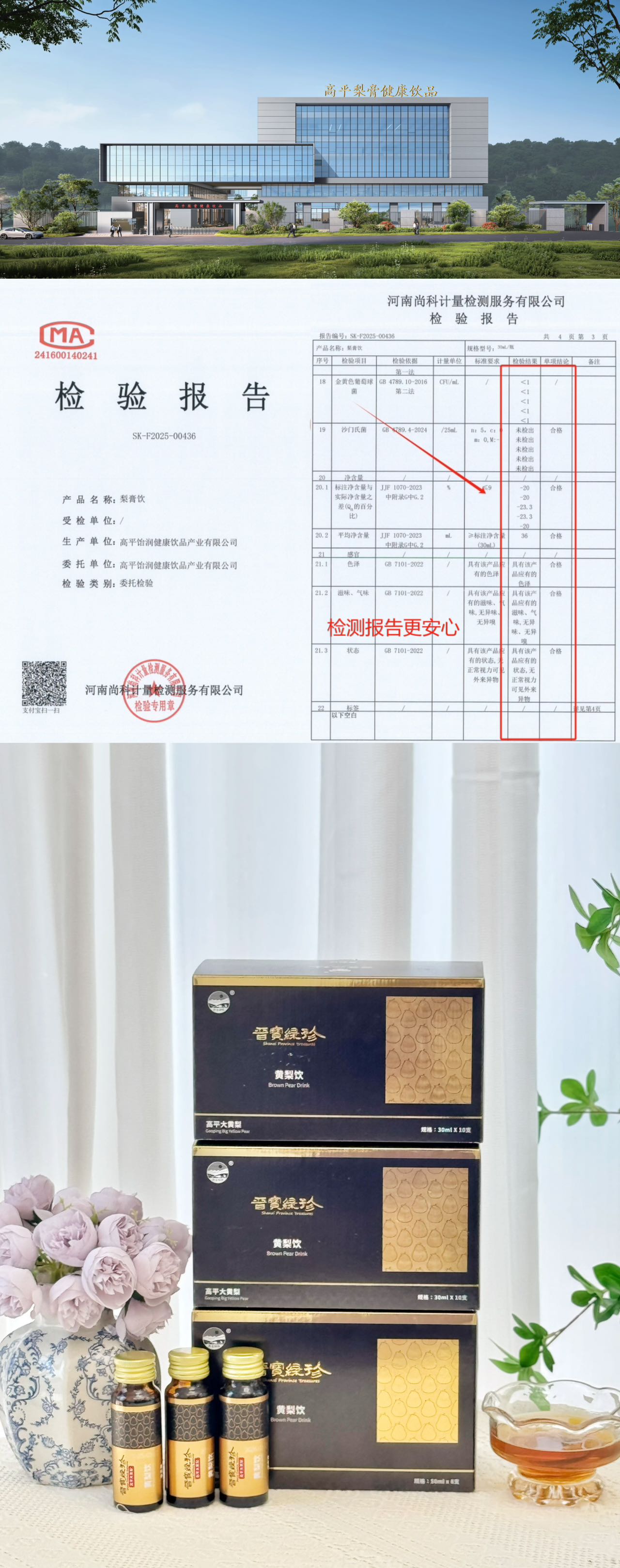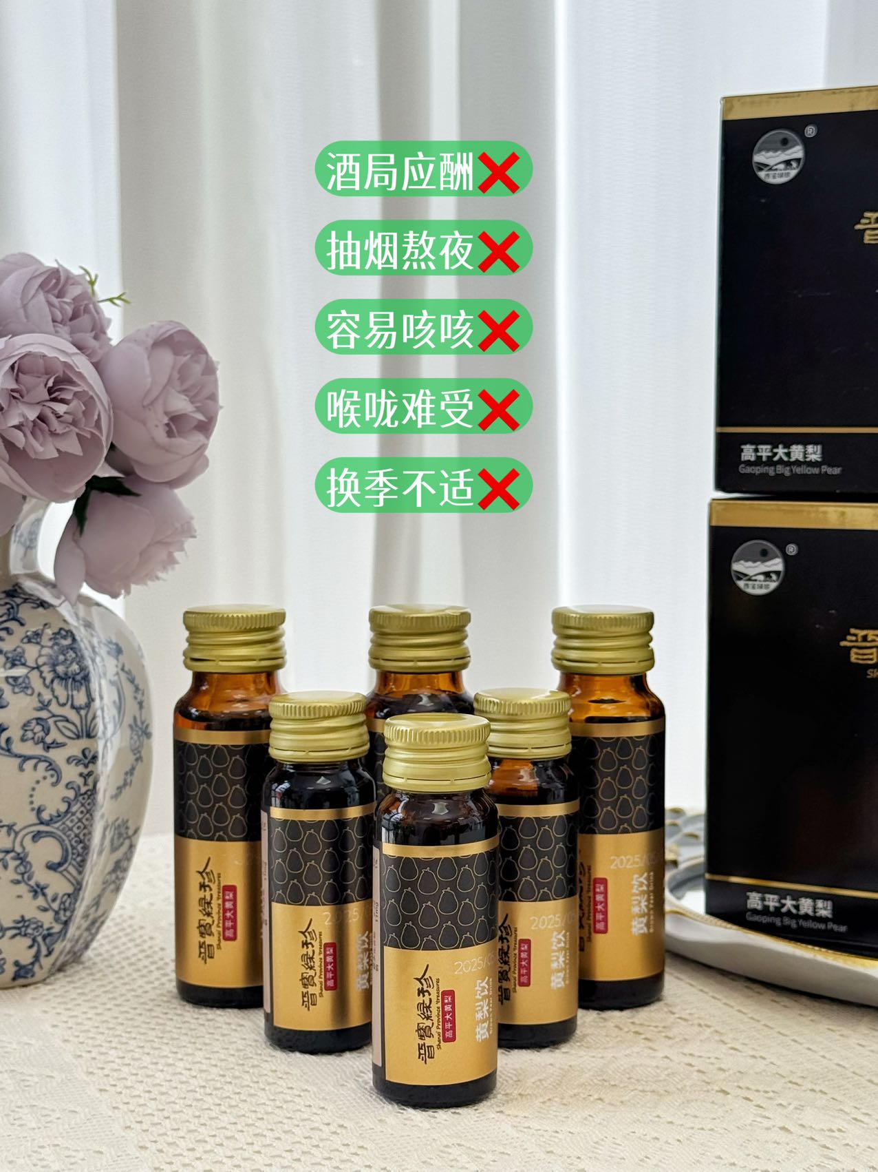 5颗鲜梨浓缩1瓶黄梨饮,慢熬12小时,不加水勾兑,锁住黄梨天然营养,含独特酚酸+润肺因子,搭配单晶体冰糖,微甜清新不腻口。适合各年龄段人群:送宝宝,呵护嗓子咳嗽少,改善便秘睡得香。(发炎上火);送爸妈,调整血压、降低血脂、增进饮食、宁心安神、健康养生不可少;送女士追剧火锅爱熬夜,美容养颜颜值高;送男士抽烟喝酒打游戏,护肺解酒状态佳。