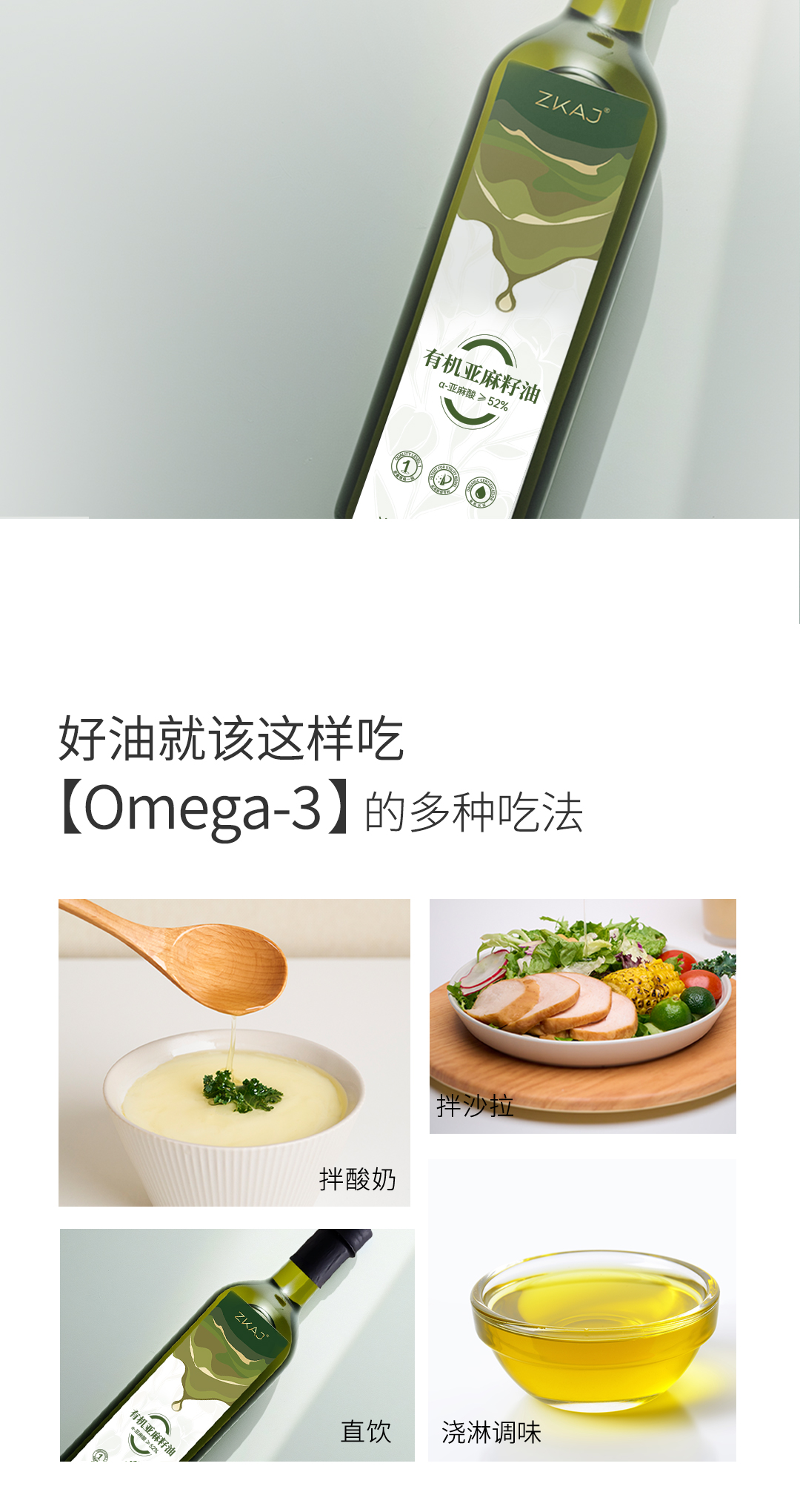 在这个纷繁的世界里,ZKAJ有机亚麻籽油如同一缕清风,带来健康与活力。