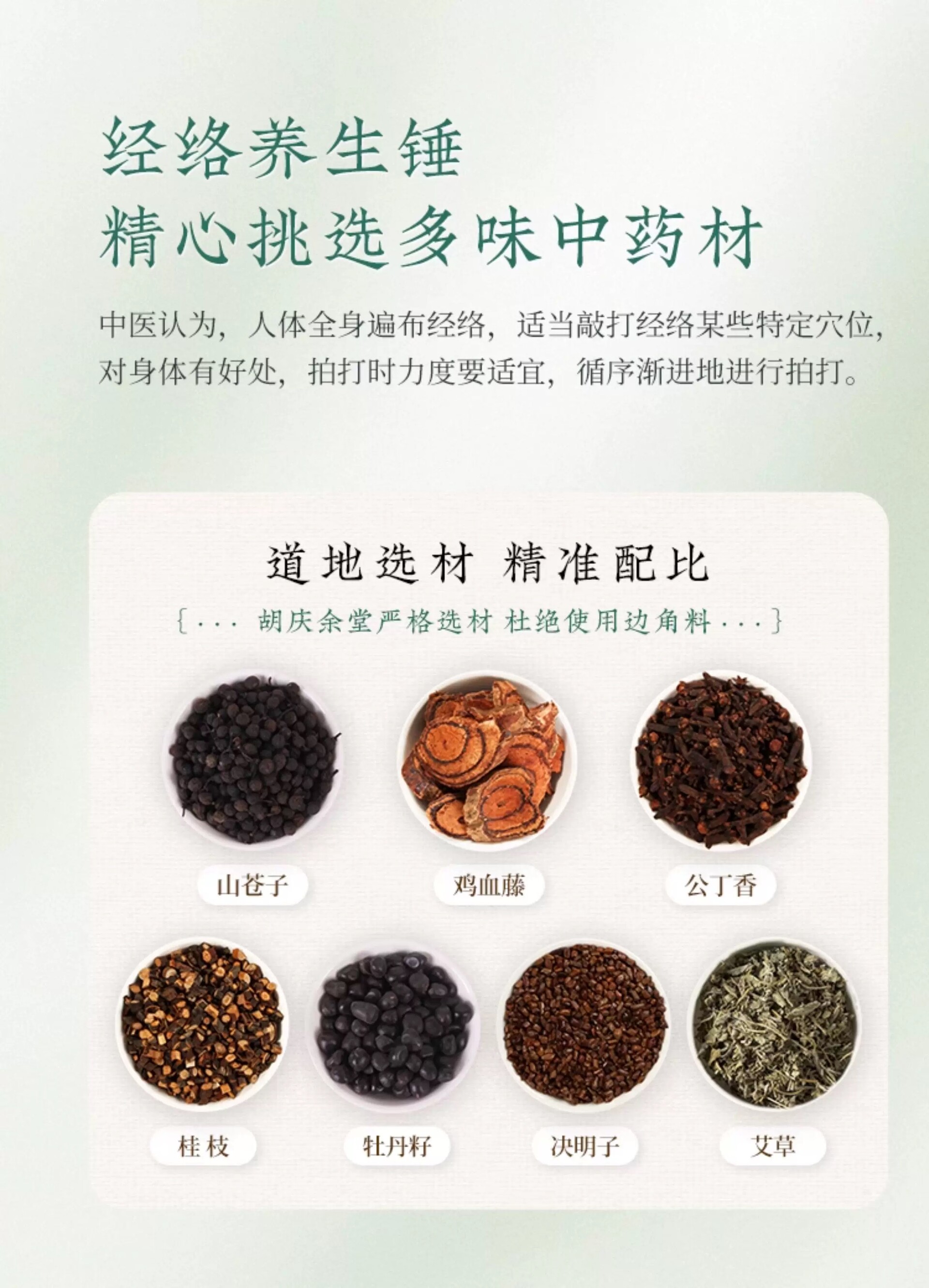 胡庆余堂 中药锤 长度28-32厘米 绿色缎面加长款礼盒装