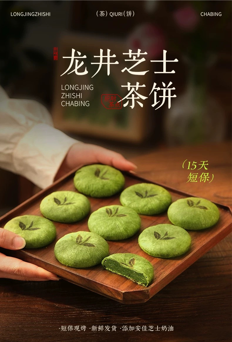 【15天短保,新鲜现烤】龙井茶饼1盒4枚120克