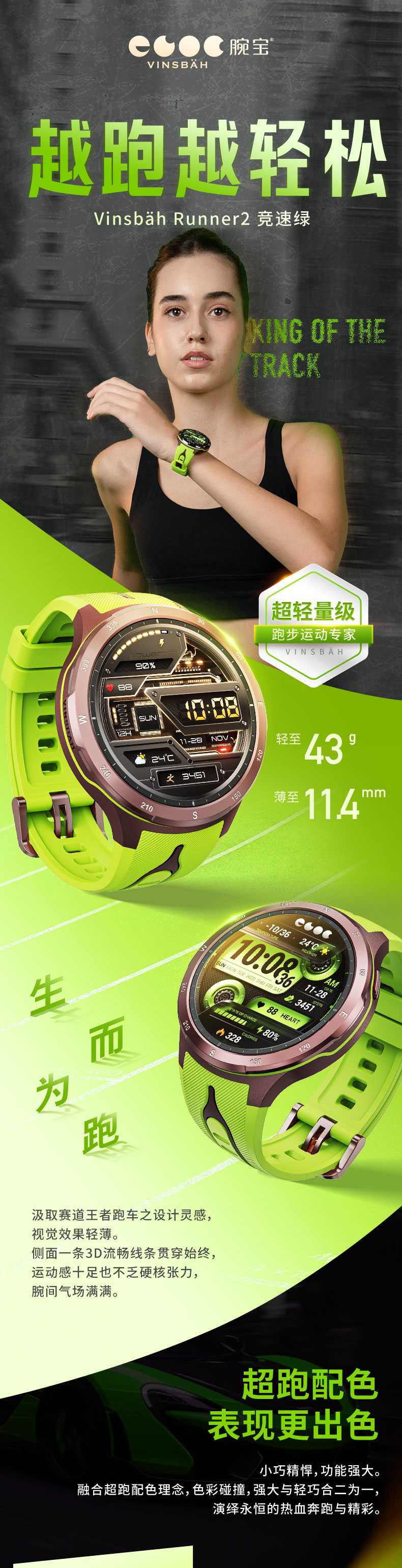 【包邮】Vinsbah腕宝Runner2竞速绿