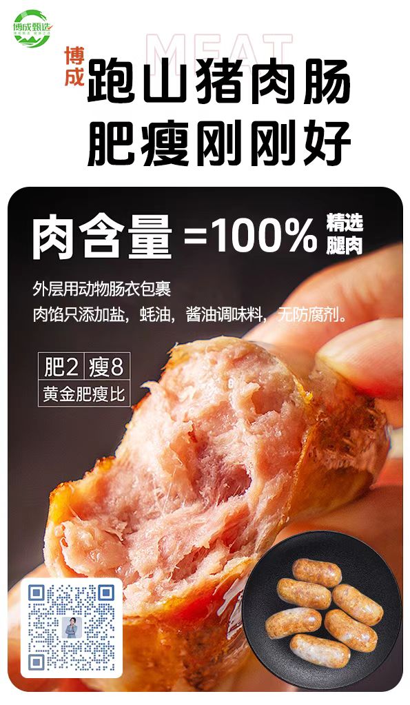商品名称:有机生态跑山猪脆皮烤肠。精选自家生态跑山猪腿肉,纯手工制作,用料安全放心,没有科技与狠活。 ![]() ![]() ![]() ![]() ![]() ![]() ![]() ![]()