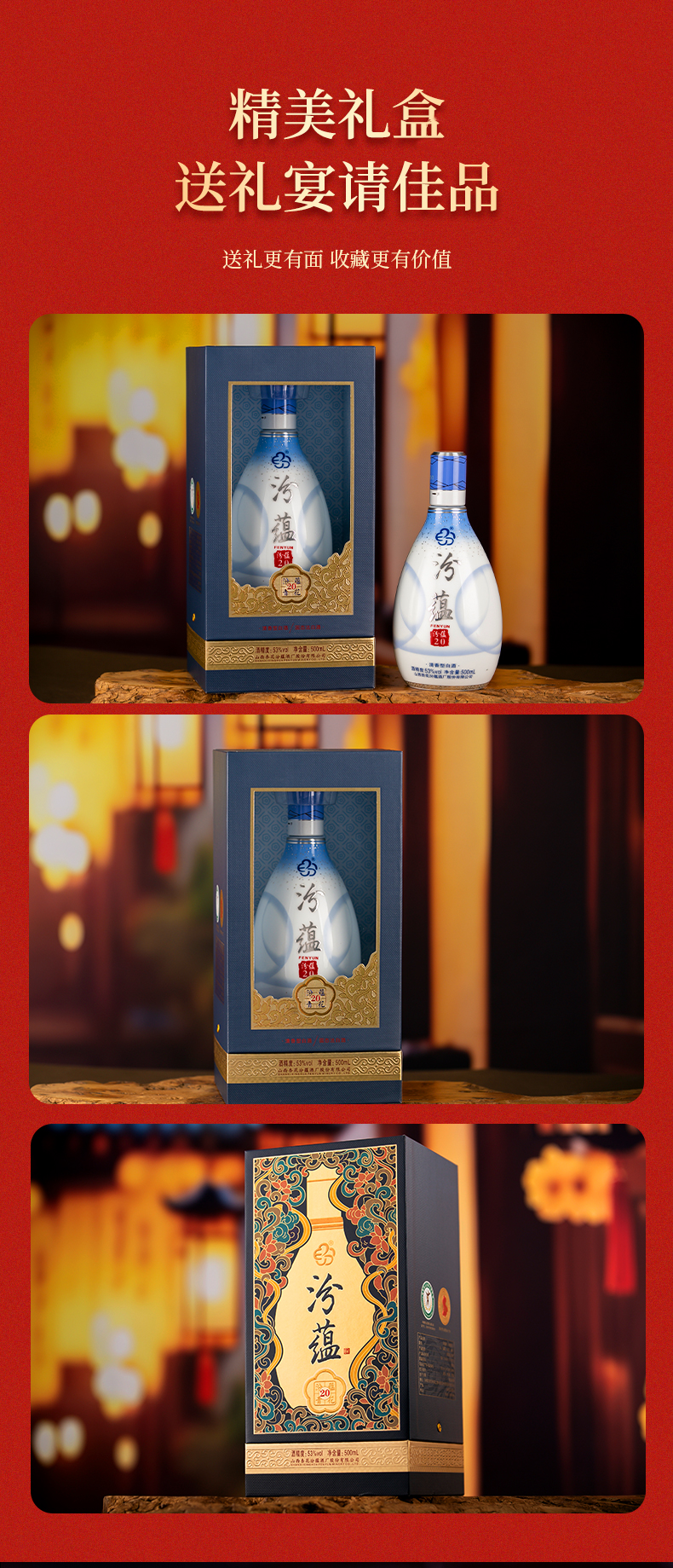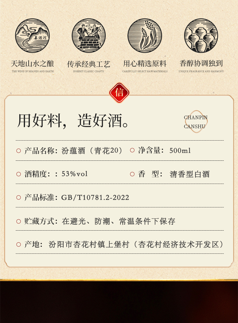 山西杏花村白酒 汾蕴青花20清香型高度白酒 53度 500ml *6瓶 /箱 京东有售,保证高品质粮食酒,校友成本价,作为副业,可对外批量售卖。品质超越汾酒青花20.