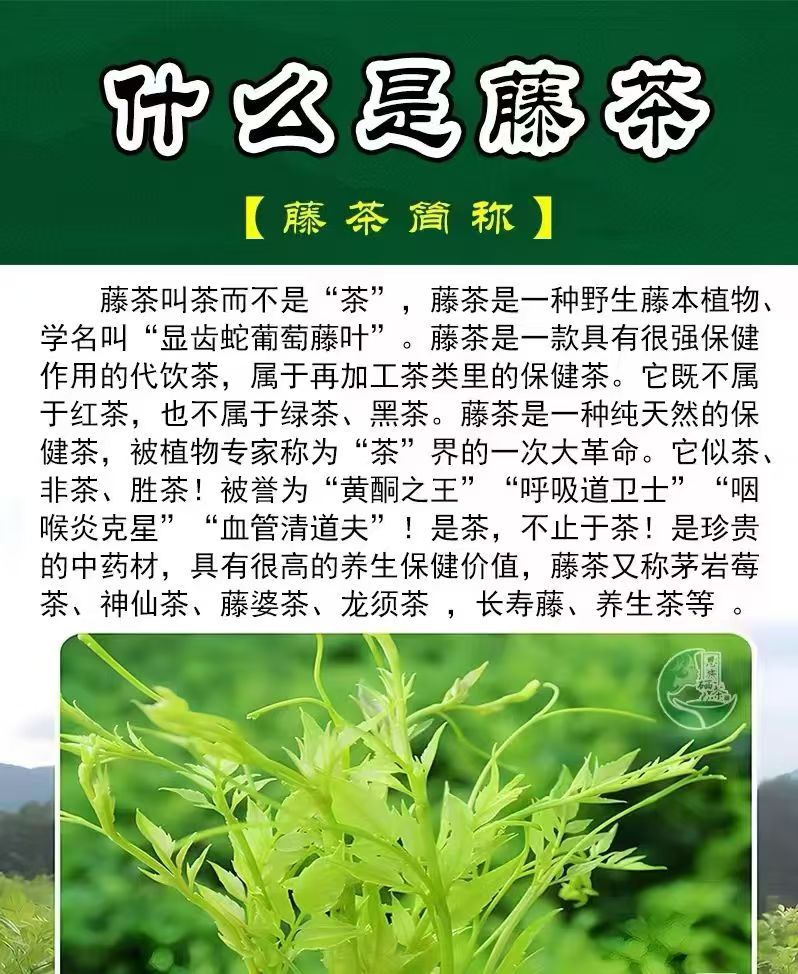 藤茶富含黄酮.清热解毒.酒醉后可以醒酒功效.降低血压.软化血管.降血糖.增强人体免疫力.关键喝下去后.甘甜味喉咙感觉好舒服.对于咽炎.咽喉炎.鼻炎有很好的效果[强]